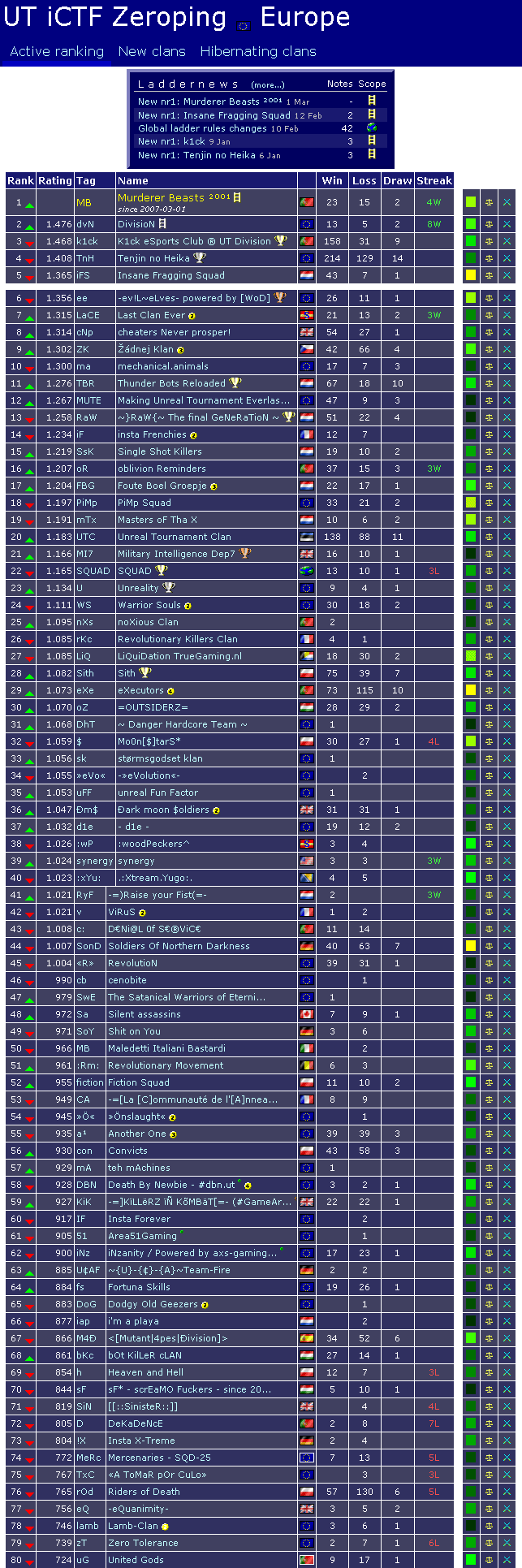 - First Place Europe Ladder ZP iCTF 5on5 - 01 March 2007